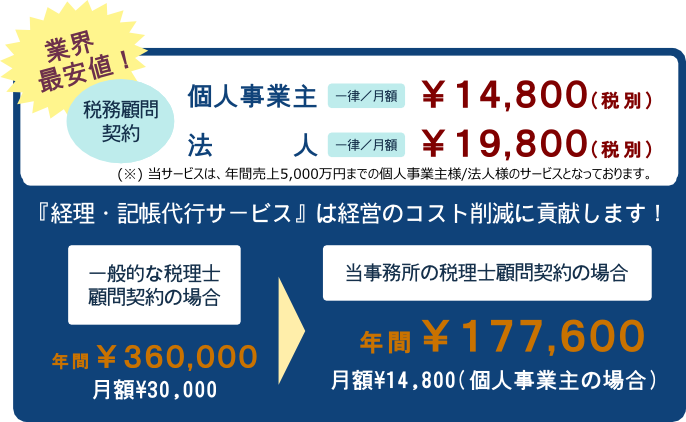 ○ | 月次顧問料 \30,000~ |