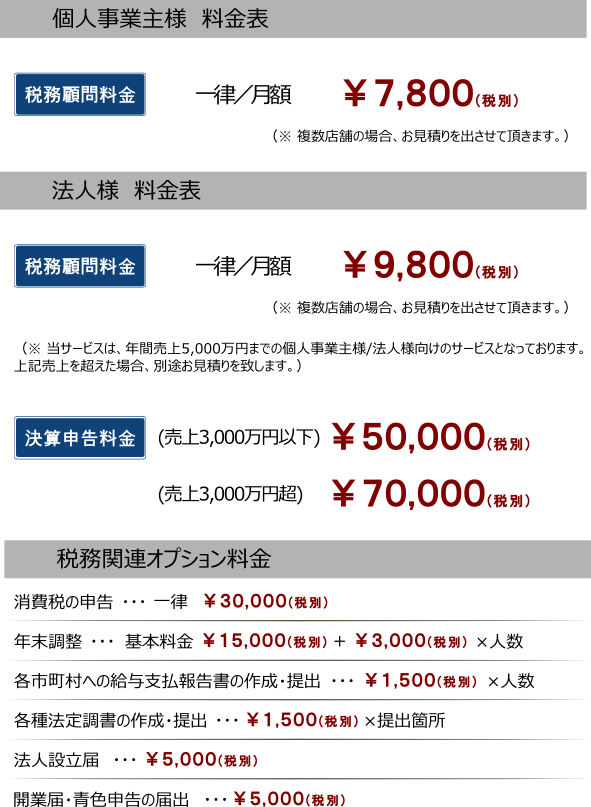 | コスト | ・個人事業主 月額\7,800 ・法人 月額\9,800 |