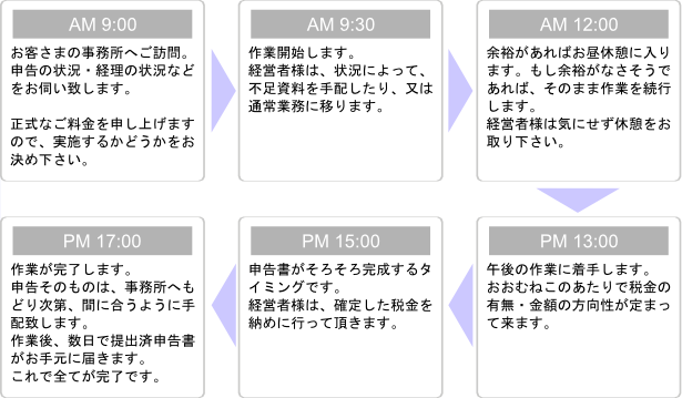 きっちり申告期限に間に合わせないとビザ申請にも影響が及ぶということもあり、急遽ご依頼がありました。